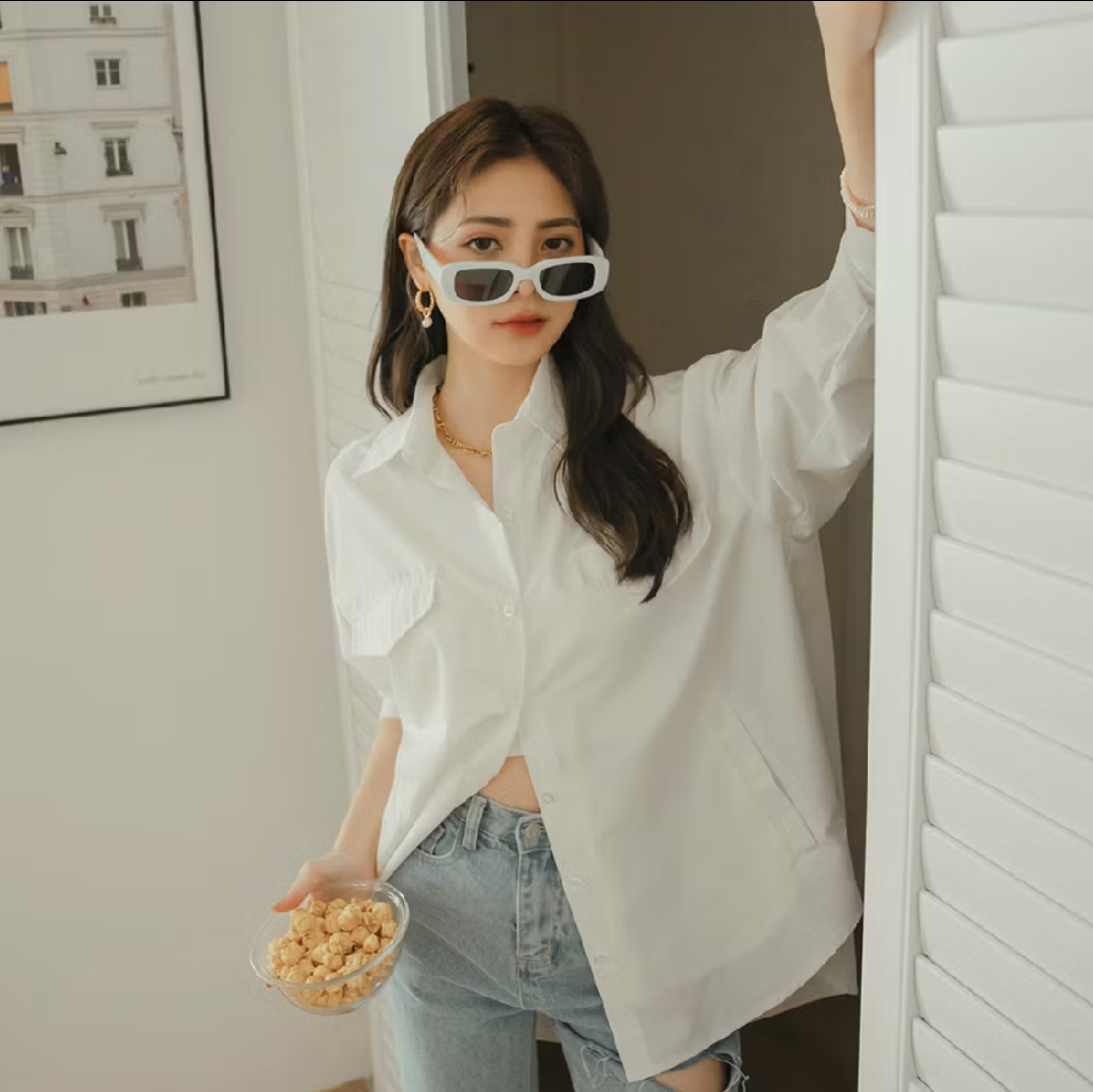 Product Description: Loose-fitting design / There are buttons on the right side that can be buckled to be changed into different styles / Comfy non-ironing anti-wrinkle fabric material