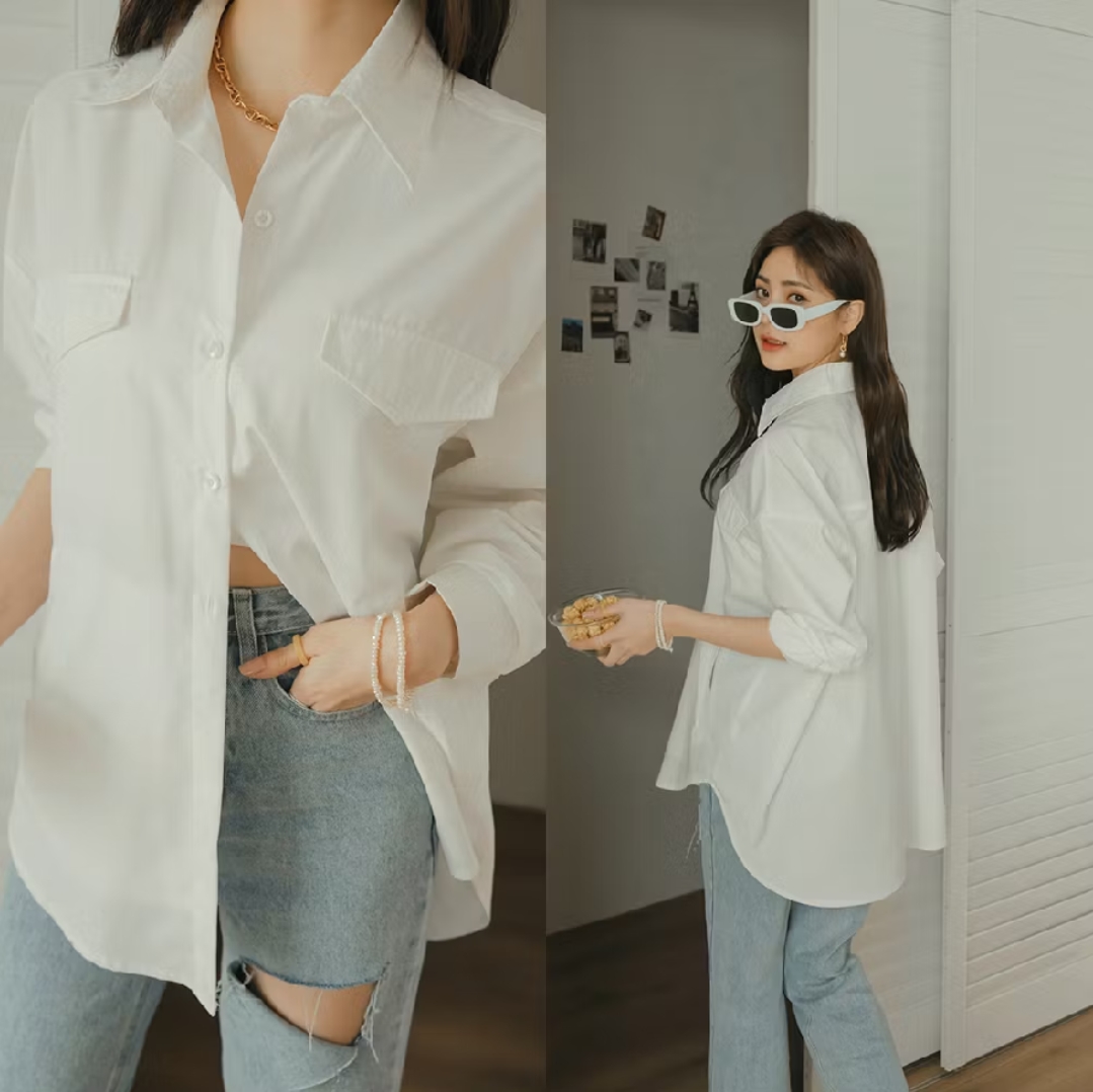 偏寬版的長版襯衫 適合外搭