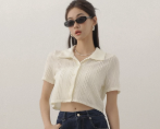 Striped Knit Collared Crop Shirt