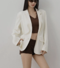 The built-in shoulder pads help refine the shoulder line and give the overall look a more structured, polished feel. The double-button, relaxed wide-cut silhouette adds a touch of effortless cool, while the warm, stretchy fabric softens the traditional tailored look of a blazer. The result is a versatile piece that feels more casual and wearable, perfect for everyday styling without looking overly formal.