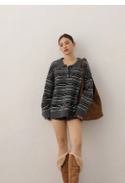 Oversized Cozy Fuzzy Knit Polo Sweater (Solid/Striped)