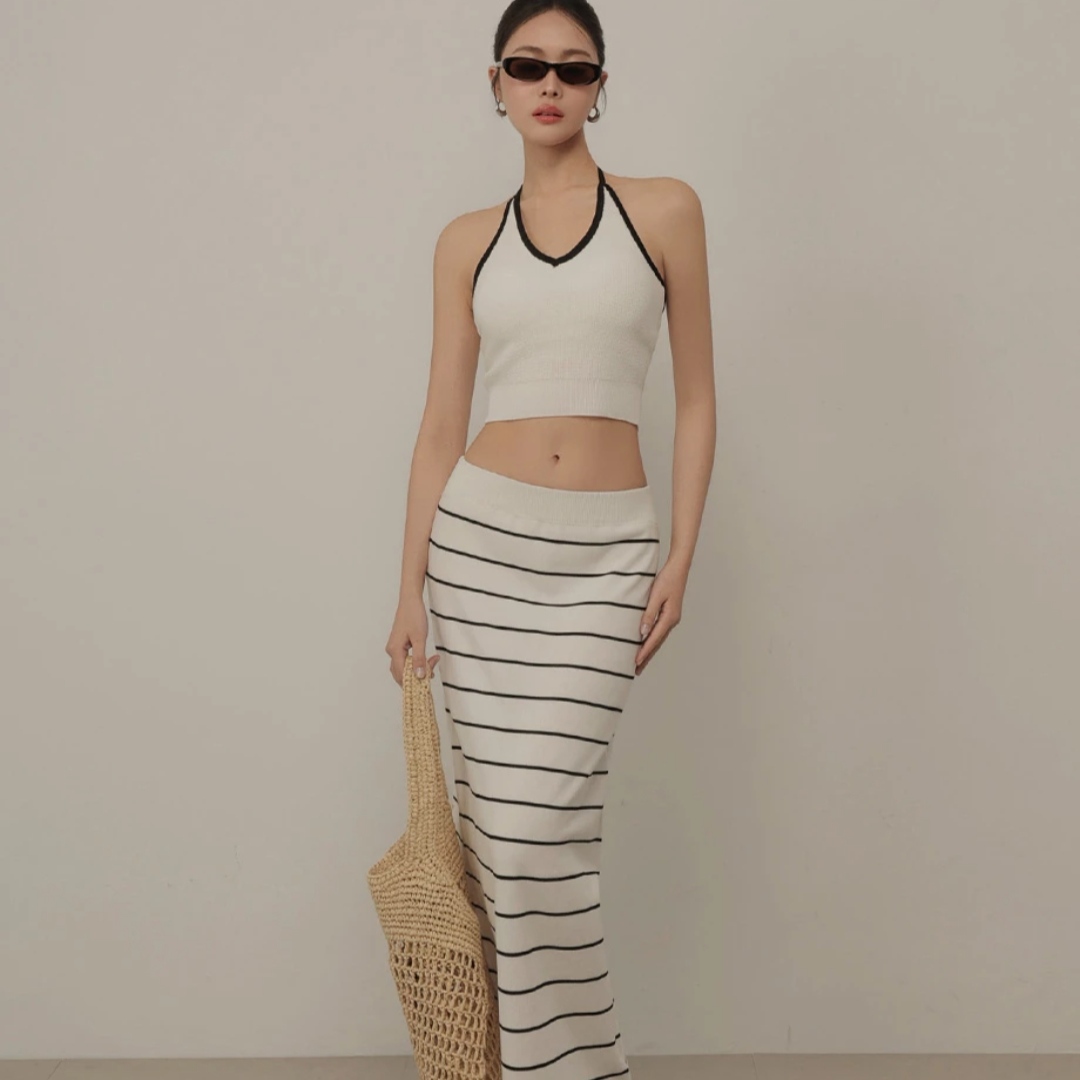 The V-neck wrap design highlights the neckline and shoulder lines, creating a slimming effect. Waffle-like knit fabric naturally hugs the body curve for comfortable, unrestricted wear. The built-in removable bra pad enhances the bust shape perfectly. This vest comes in contrast trim and classic solid colors, pairing effortlessly with pants or skirts for a vintage American-inspired seasonal look.