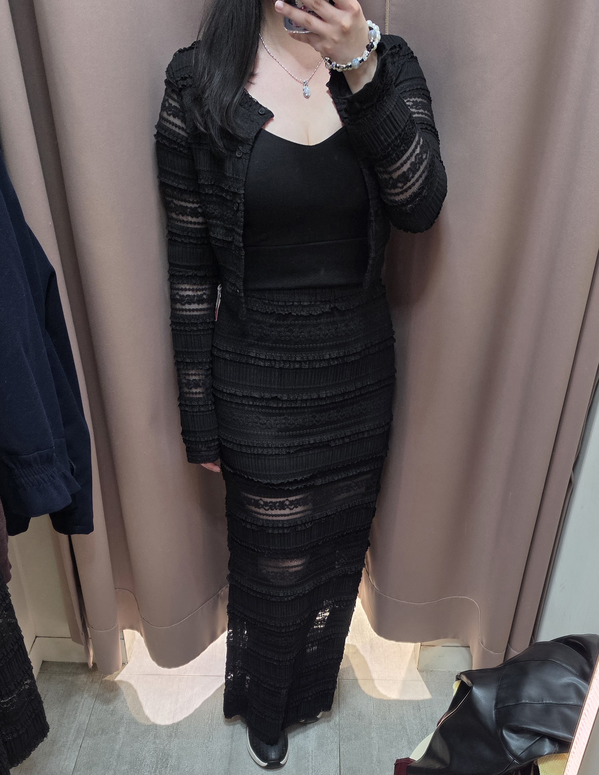 很好看精緻的蕾絲布料!上面都是立體荷葉,整套搭起來很美喔!