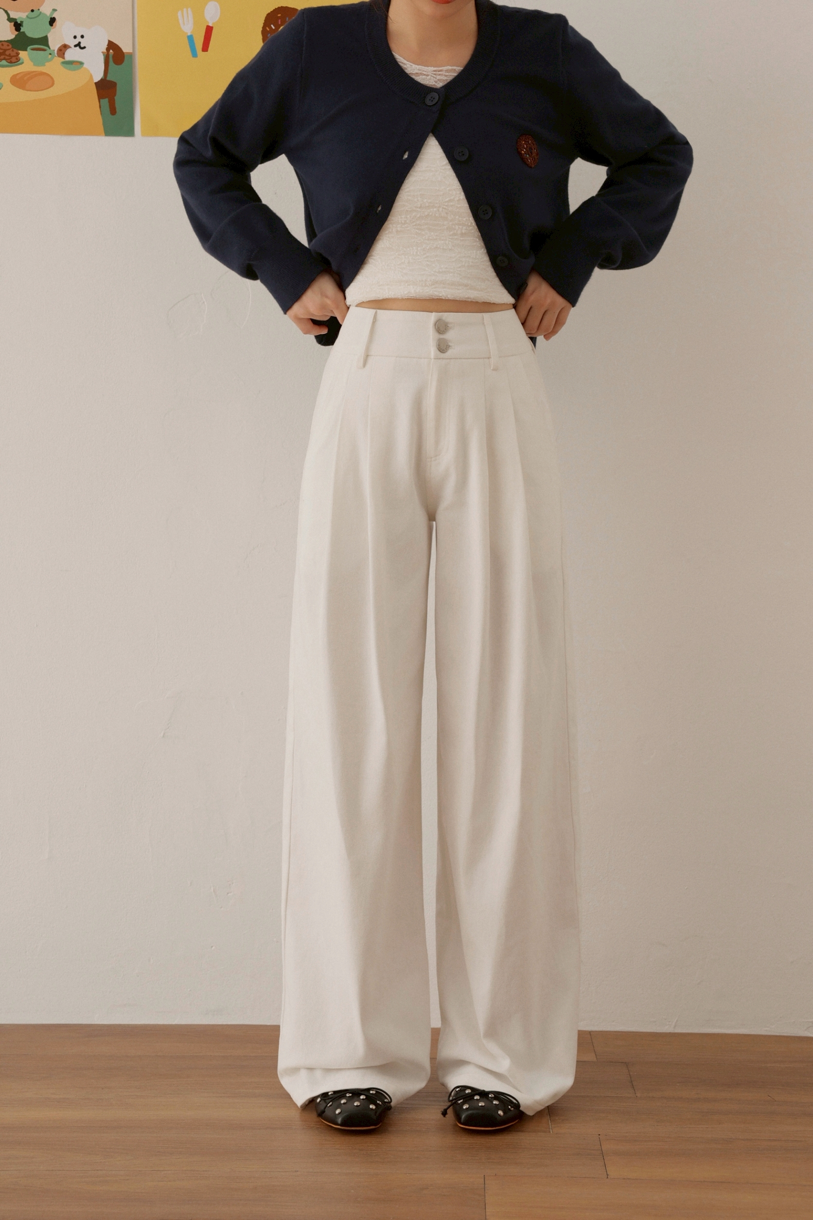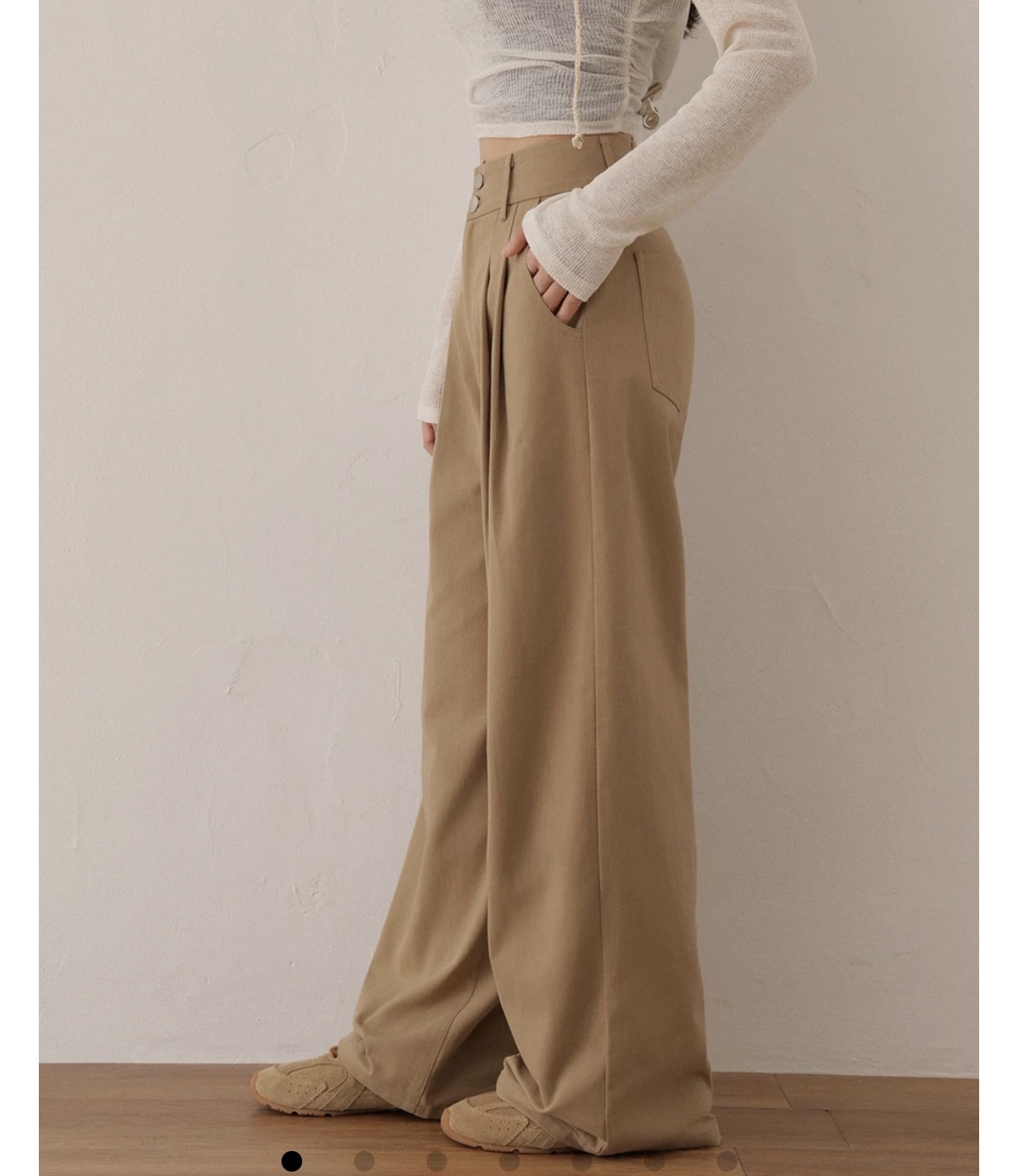 The pleated design of these high-waist wide-leg pants effectively shapes the waist and elongates the legs. Made from 100% cotton with a loose straight-cut silhouette and an elastic back waistband, they accommodate diverse body types while providing a comfortable fit. Pair with a cropped top for a refined everyday casual look.