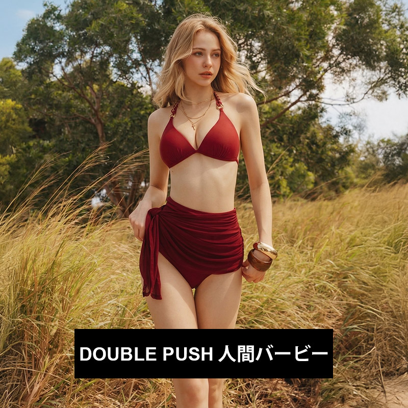 INS風 スラブ織りビキニ&カバーアップ 4点セット