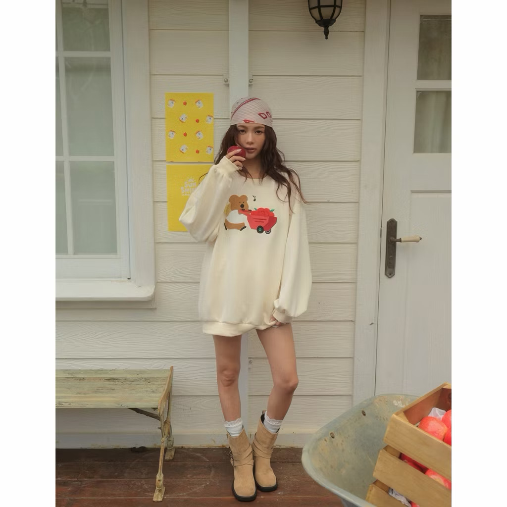 【DINOTAENG】Fluffy Embroidery Graphic Sweatshirt
