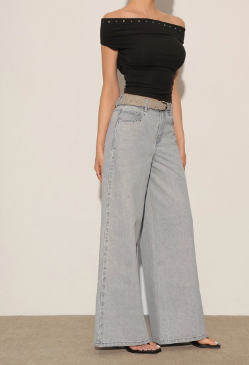 Studded Side Trim Wide Leg Jeans Denim Pants