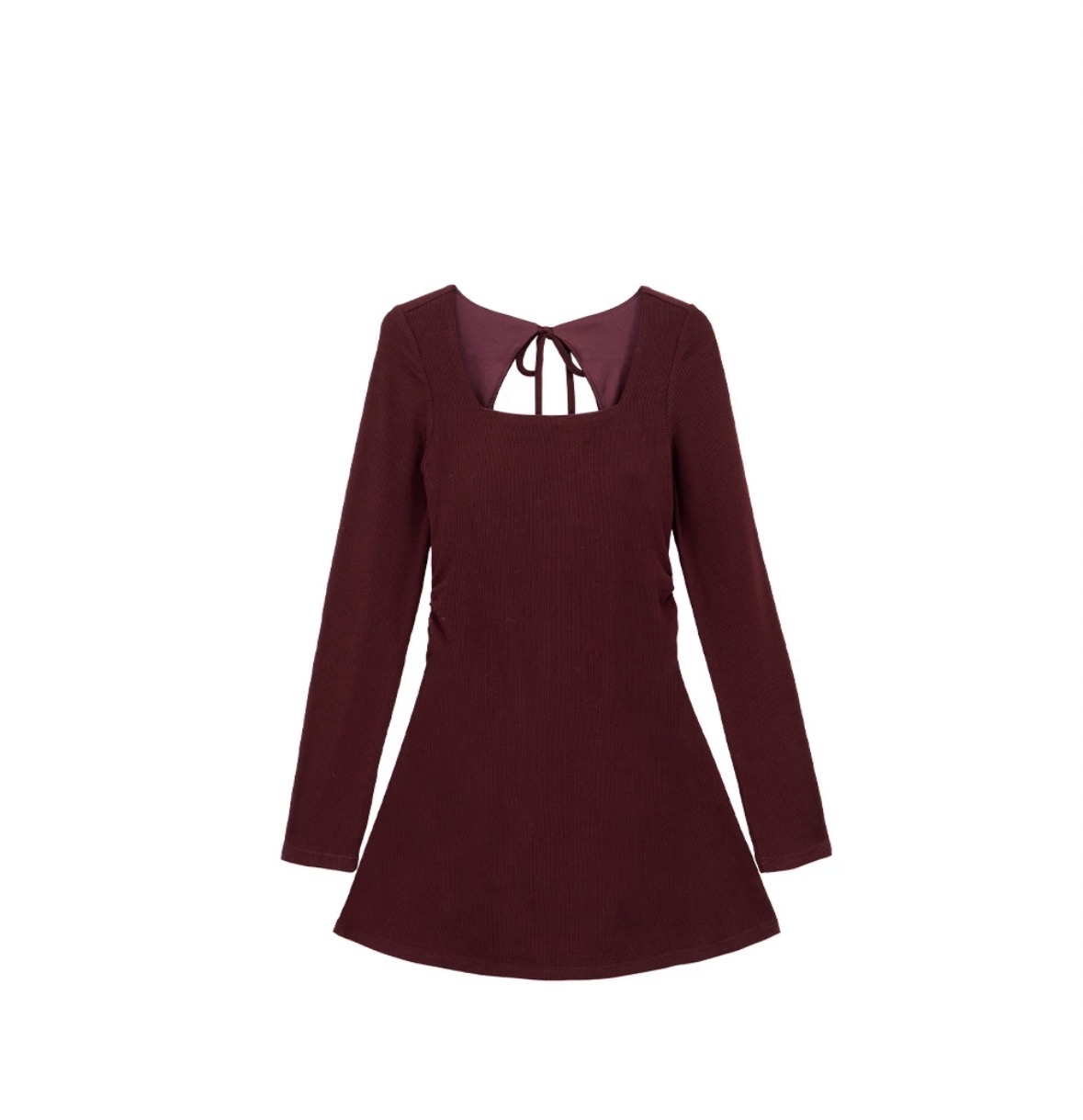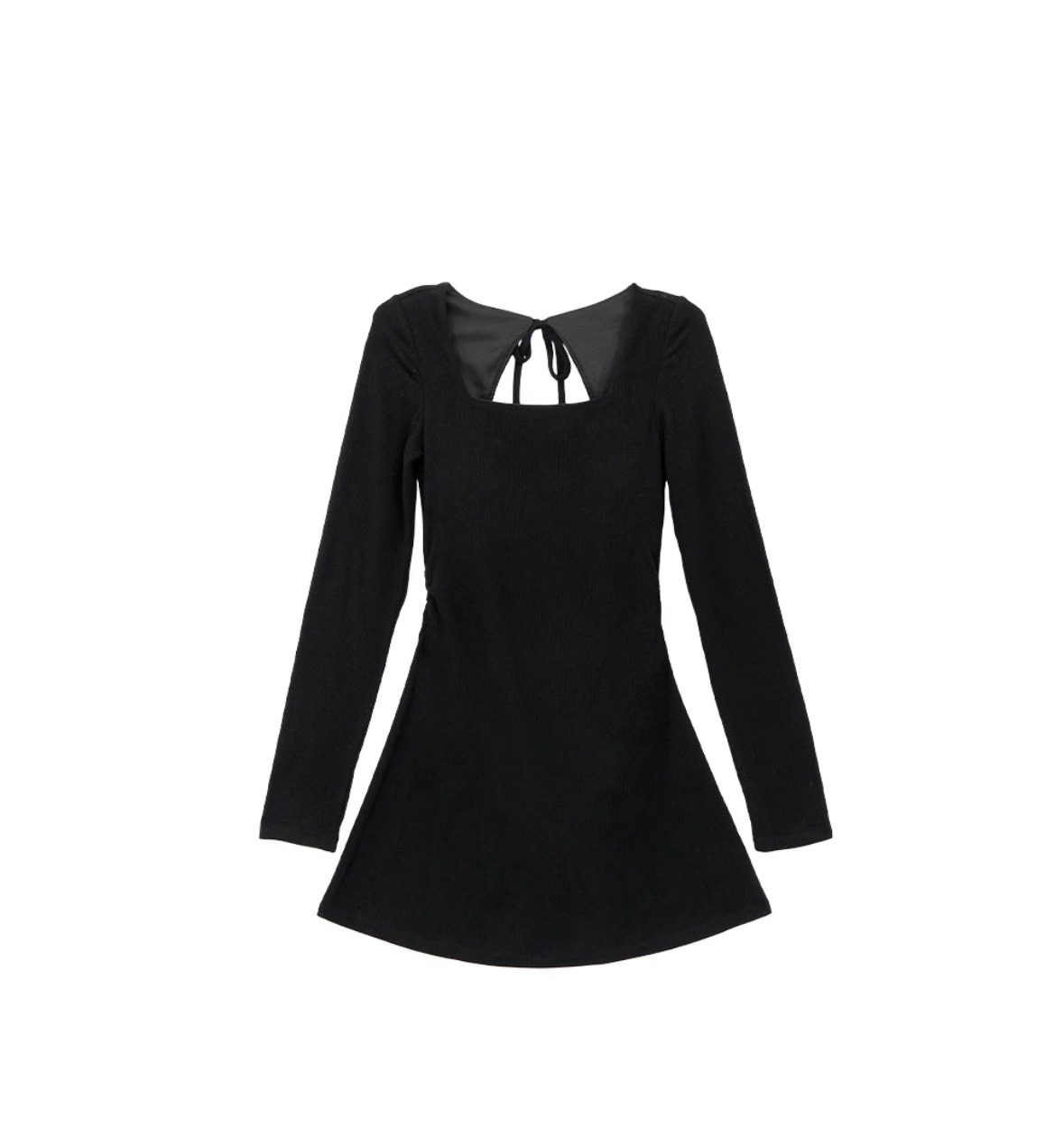 This square-neck velour dress features a soft, skin-friendly texture with side ruching to sculpt the waist, complemented by a back cut-out and tie detail for a refined, feminine look. The square neckline highlights the collarbone, while the built-in bra provides secure support and confidence, making it a versatile choice for dates or casual outings.