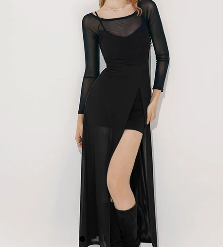 Sexy Mesh Slit Padded Maxi Dress Set Wear