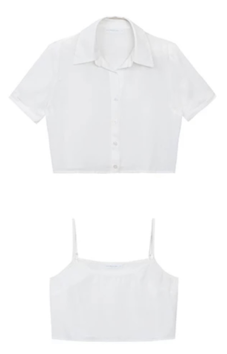 Product Description: [Outer] Button-front design [Inner] Adjustable shoulder straps