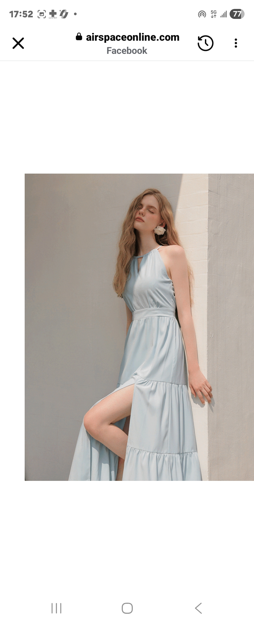 繞頸綁帶鏤空削肩開衩蛋糕長洋裝(附胸墊) 颜色很好看
