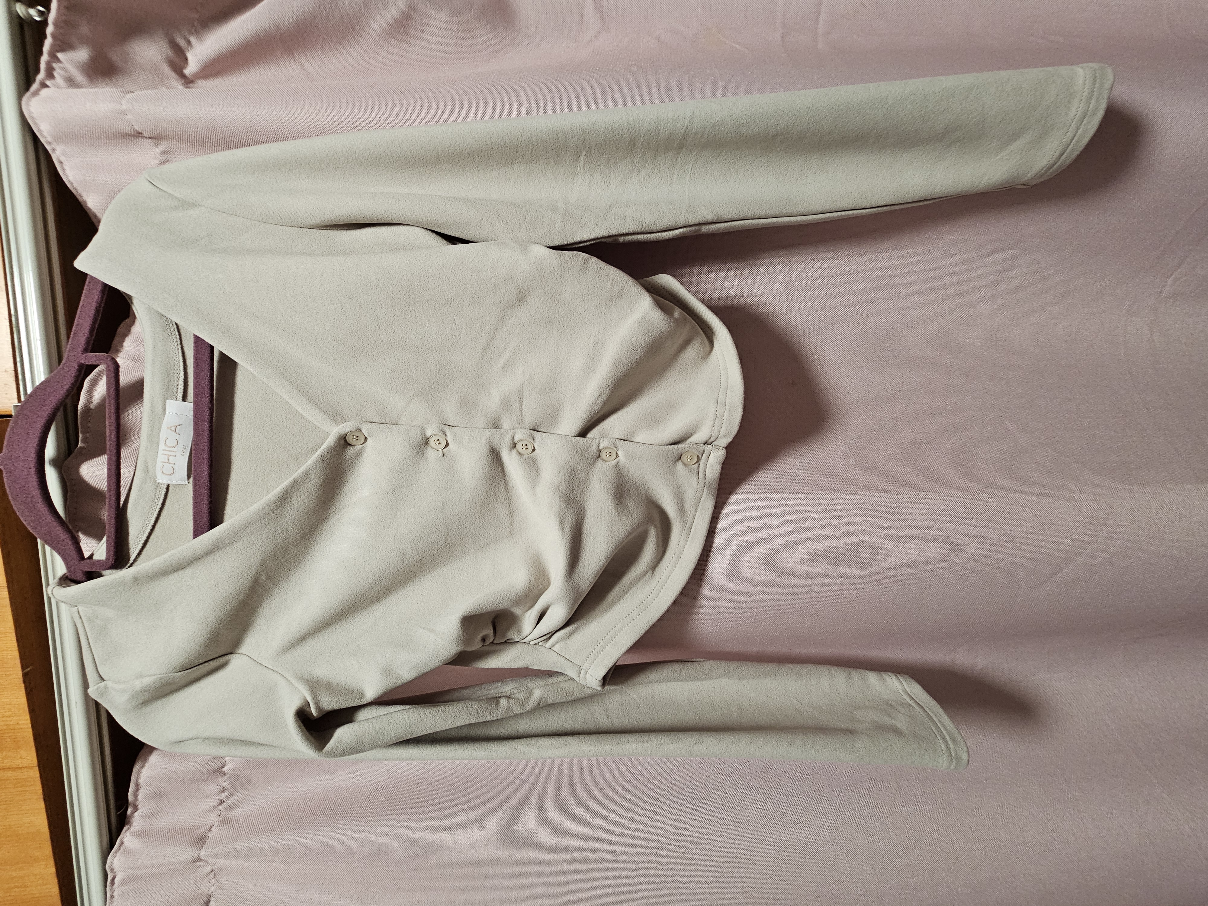 Fabrik brushed yang lembut dan hangat memberikan sentuhan selesa. Reka bentuk leher V dipadankan dengan kardigan berbutang menonjolkan garis tulang selangka dan bahagian dada, manakala perincian kedutan di sisi membantu membentuk pinggang dan melaras siluet badan. Potongan pendek menaikkan proporsi bahagian bawah badan, menjadikannya item asas yang mudah dipadankan dan praktikal.