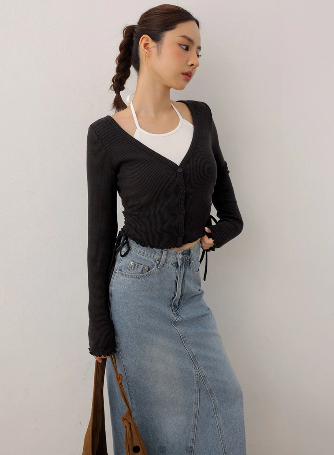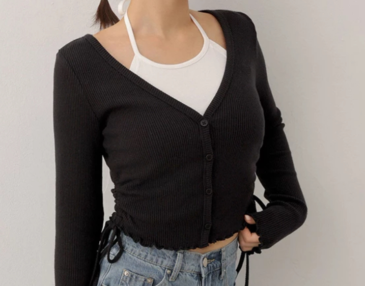 Kardigan 2-Lapisan Hem Lettuce Kedut Sisi