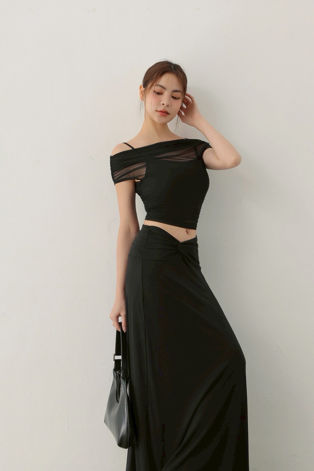 Skirt Maxi Twist Front Ruching Back Flare Fit