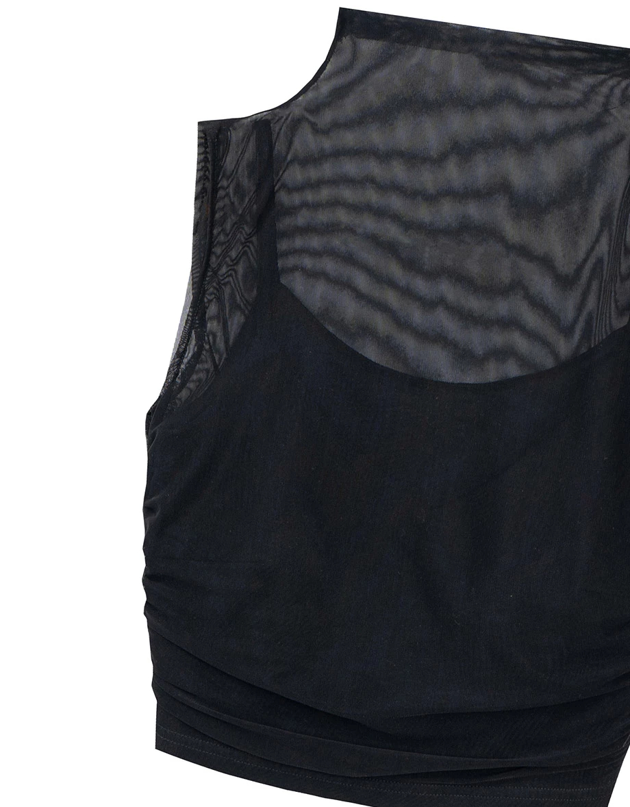 高領側抓皺短版透紗背心(附胸墊)