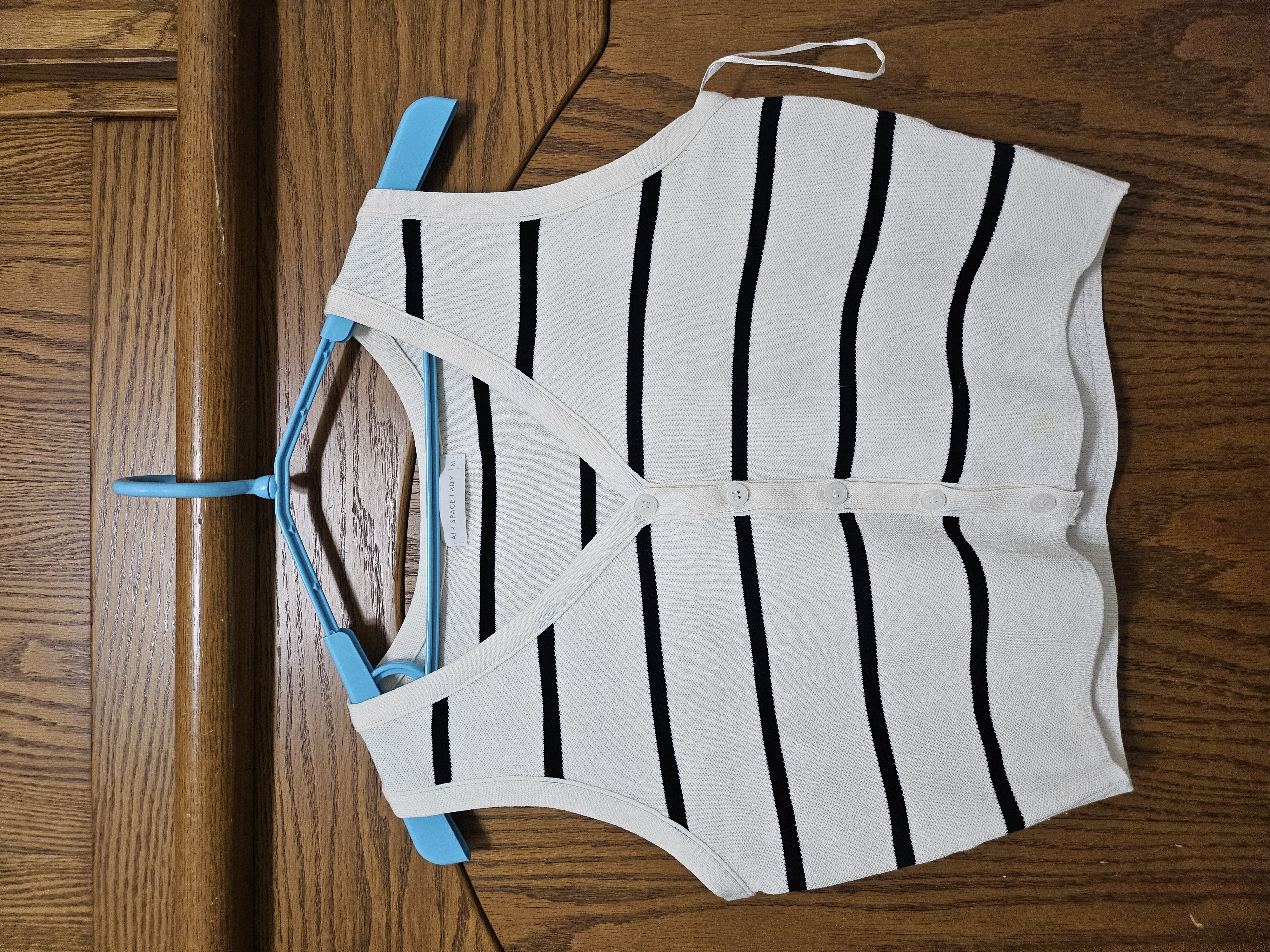 V領排扣橫條紋針織背心