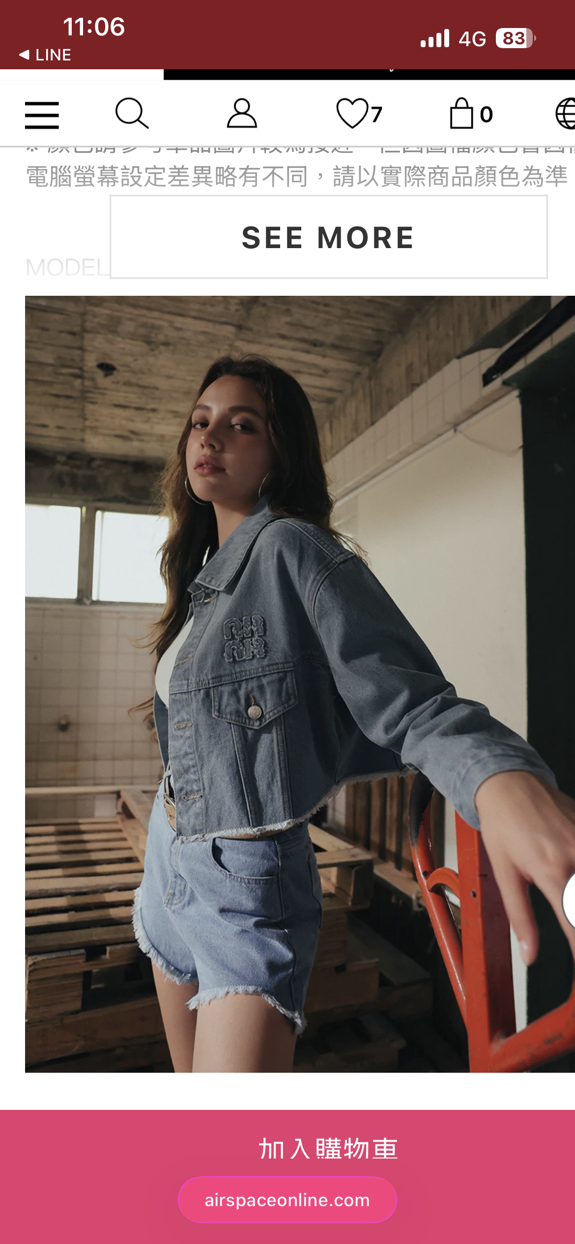 身高174cm/胸圍Bust:83cm