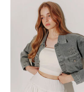 貼布LOGO不收邊短版牛仔外套