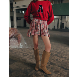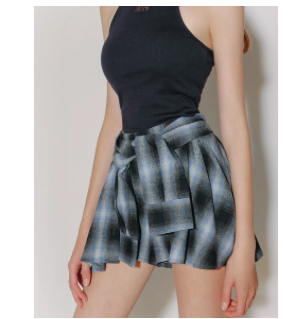 格紋襯衫袖綁帶短褲裙