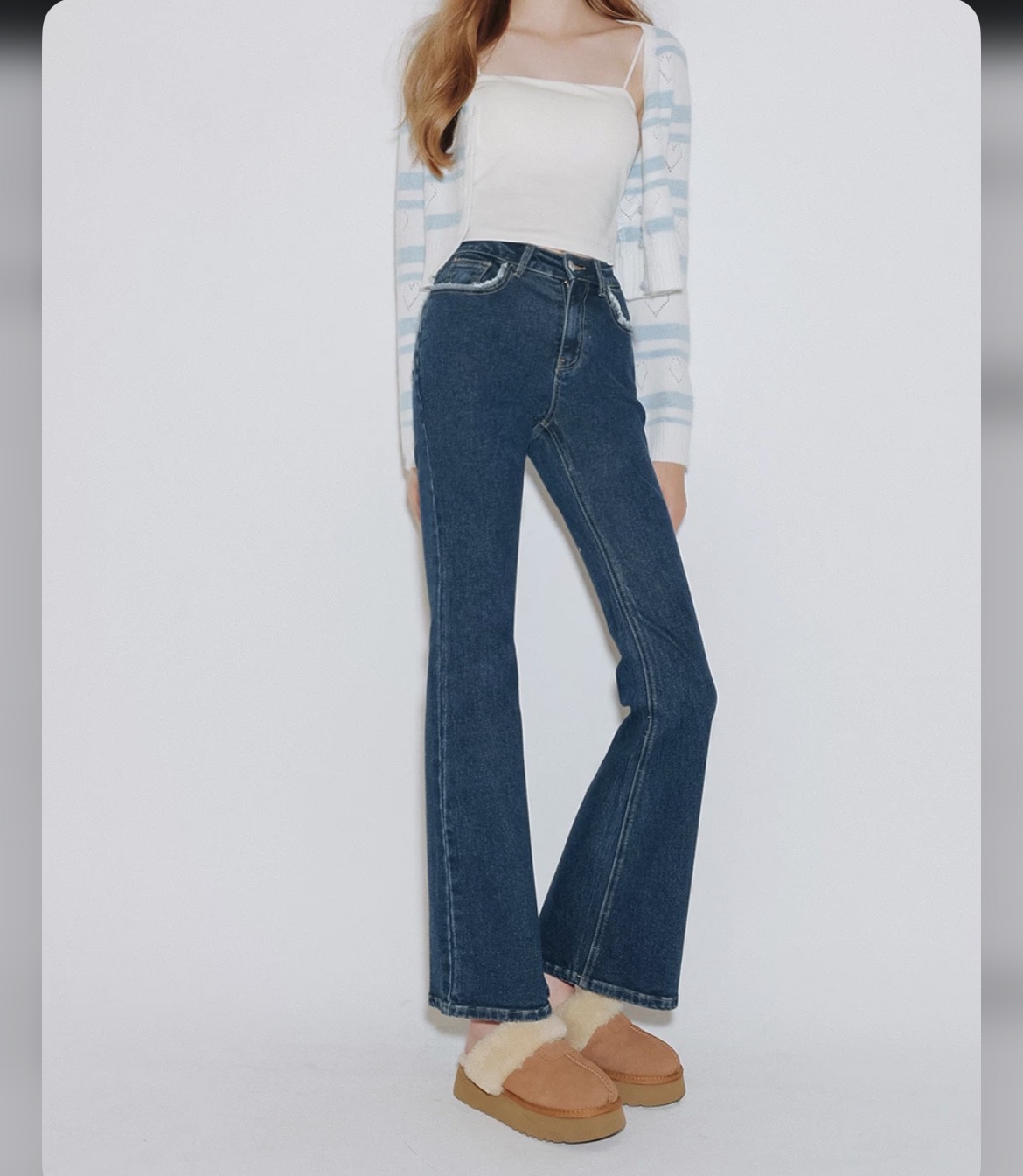 商品描述:口袋不收邊設計/合身喇叭褲型