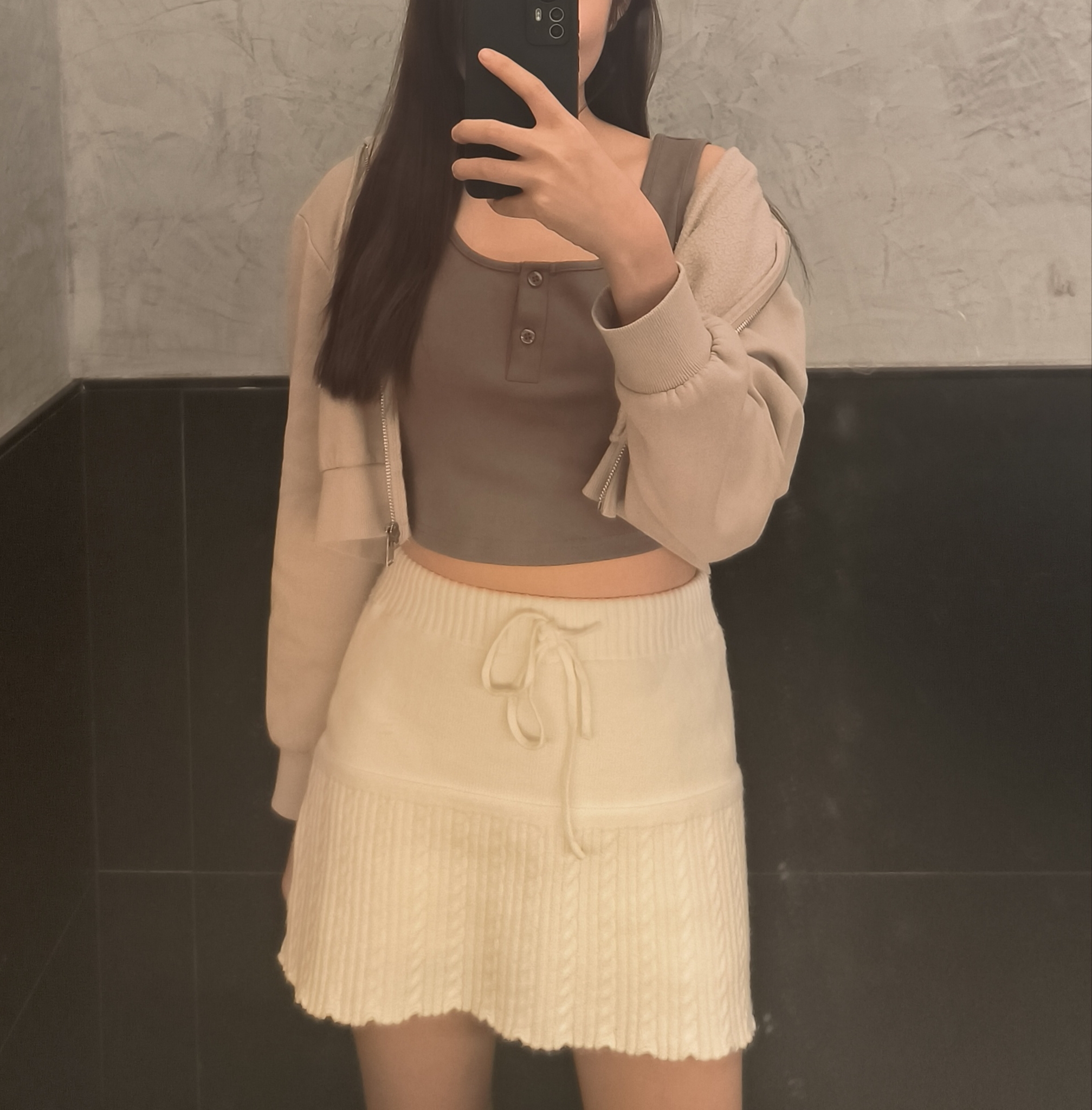 木耳邊裙擺抽繩麻花針織短裙木耳邊裙擺抽繩麻花針織短裙