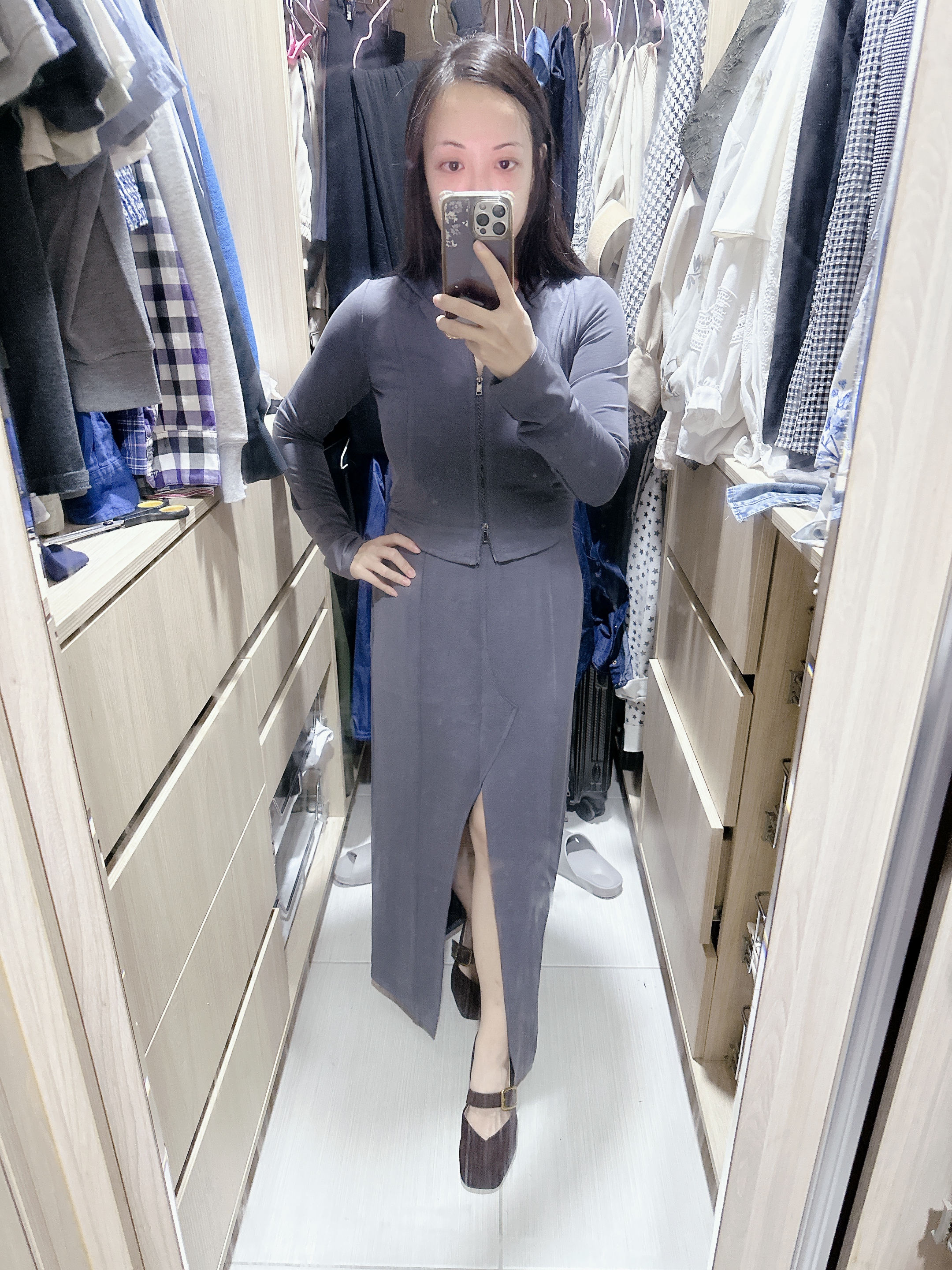 【AIR空氣棉零重力】高腰車褶線前開衩修身直筒長裙