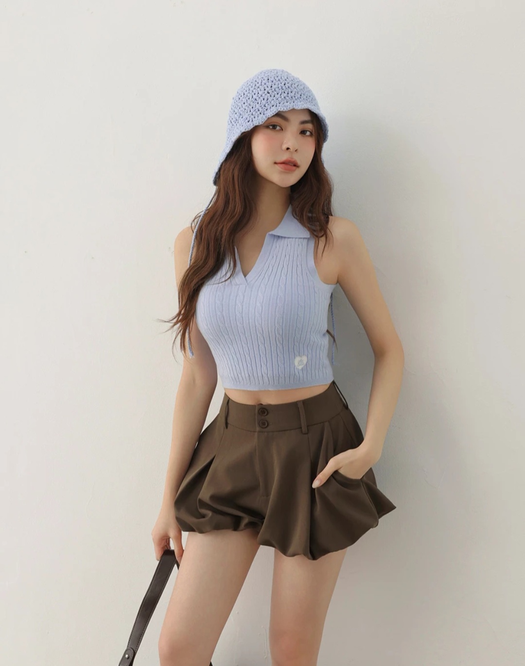 帶點紋理的挺版皮質面料,加上時髦低腰剪裁與腰頭金屬鉚釘裝飾,讓這款短裙散發強烈的美式復古氣息。正面獨特的單側開衩層次設計能優化大腿部位的線條,穿起來顯瘦修長。