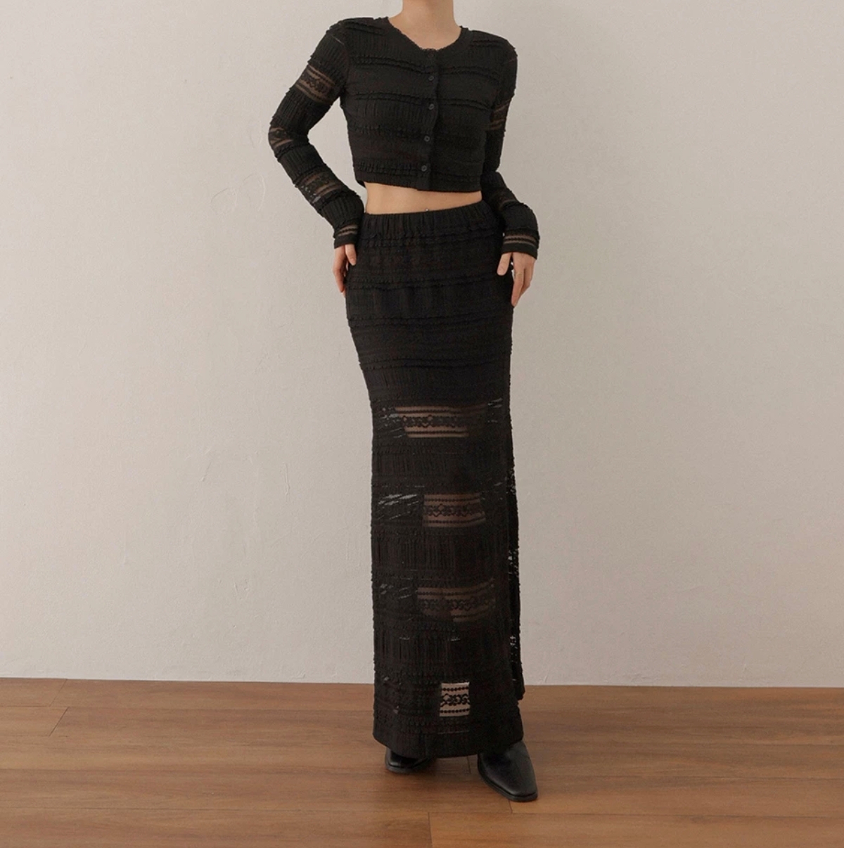 很好看精緻的蕾絲布料!上面都是立體荷葉,整套搭起來很美喔!