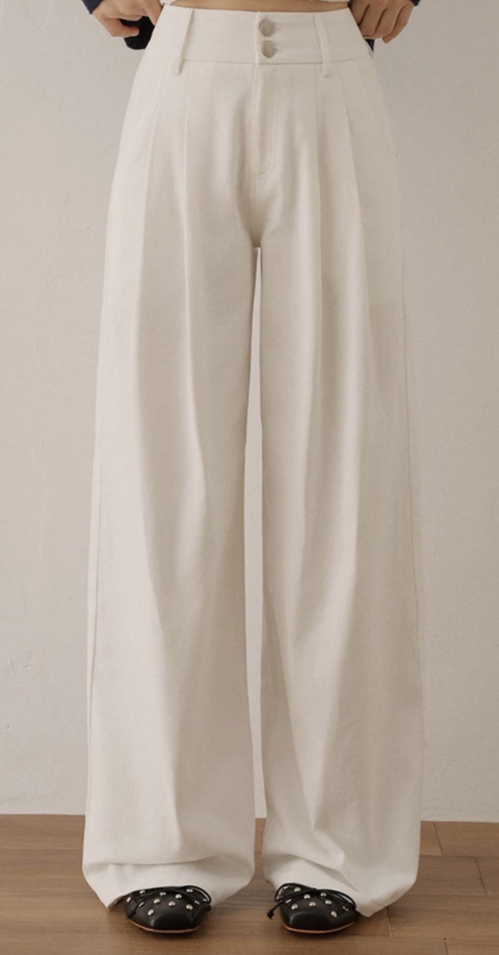 這款高腰寬褲的打褶設計能有效修飾腰腹並拉長雙腿比例。純棉材質與寬鬆直筒版型,加上後腰鬆緊樣式,不僅包容多元身形,並且提供舒適自在的穿著感。任意搭配短版上衣即可展現富有質感的日常休閒造型。