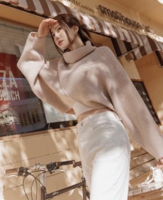 設計感高領交叉短版毛衣