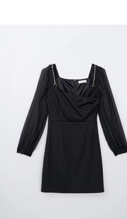透膚拼接珍珠鍊短洋裝