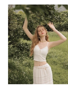 V領蕾絲花邊綁帶短版細肩帶背心(附胸墊)