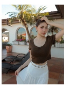 V領抓皺木耳捲羅紋短袖TEE