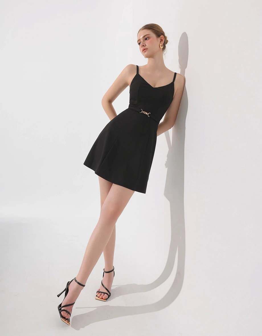 天生馬甲線 收腰魚骨短洋裝(附胸墊)