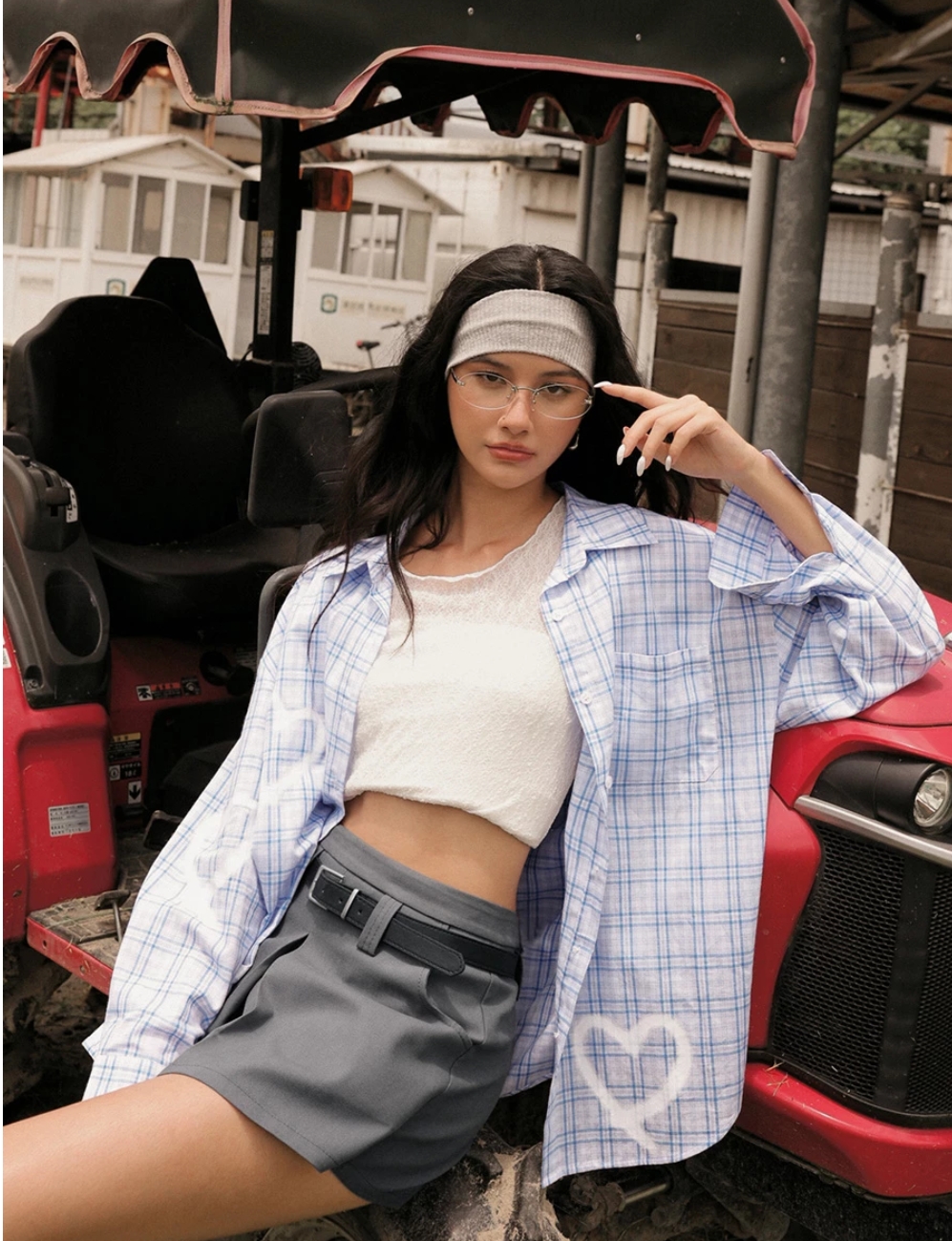 塗鴉愛心印花格紋長袖襯衫