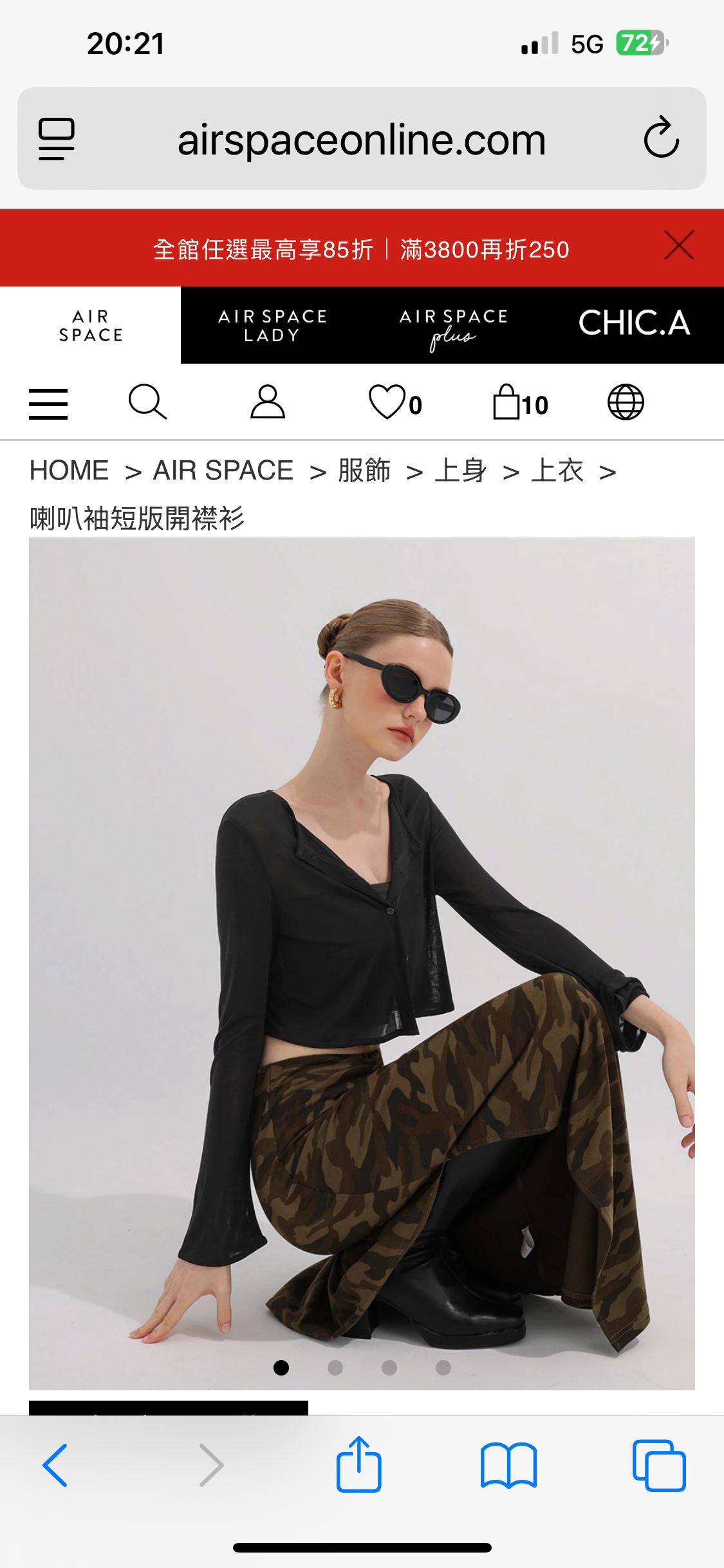 喇叭袖短版開襟衫