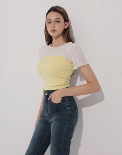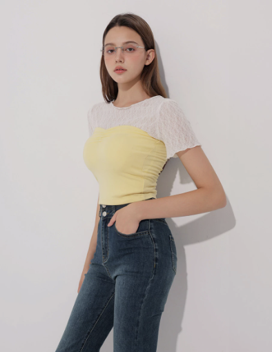 桃心領抓皺短版平口BRA TOP