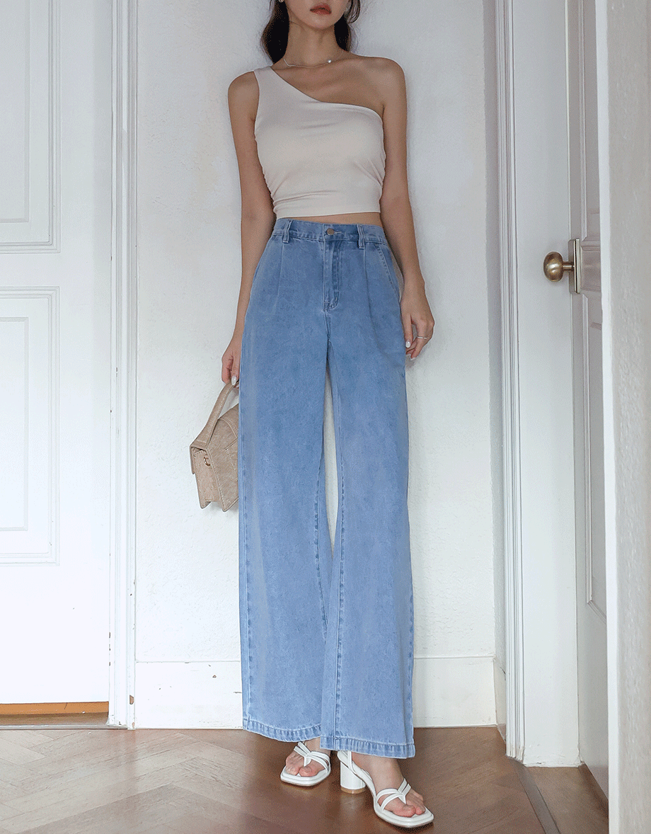 BFF輕磅軟丹寧牛仔打褶直筒褲