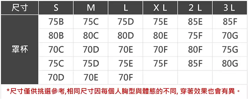 | 美碼 | 英碼 | 澳碼 | 歐碼 | 胸圍 | 腰圍 | 臀圍 | |