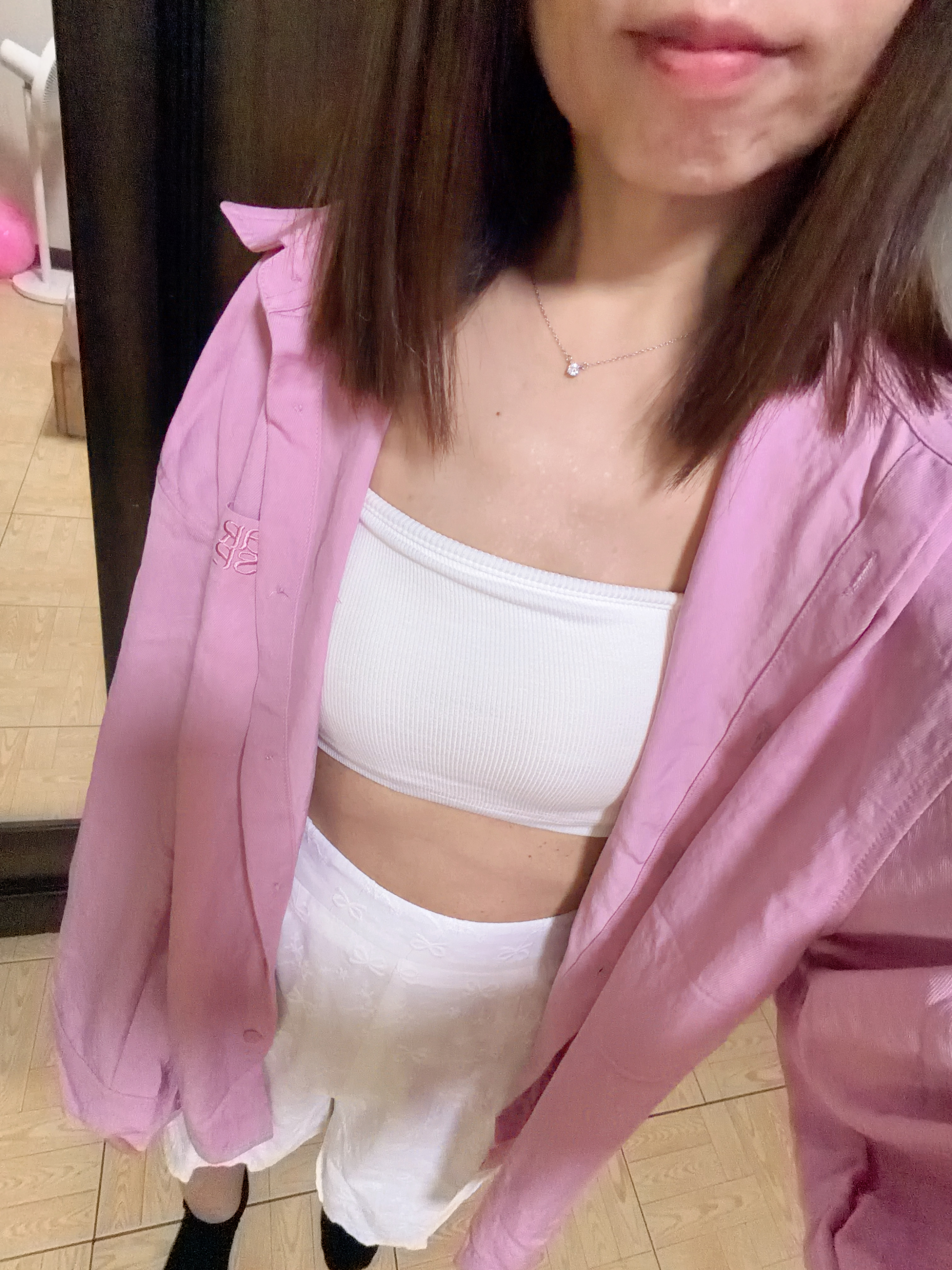 粉色襯衫很顯白,襯衫材質很舒服,不太會皺,怎麼搭配都適合