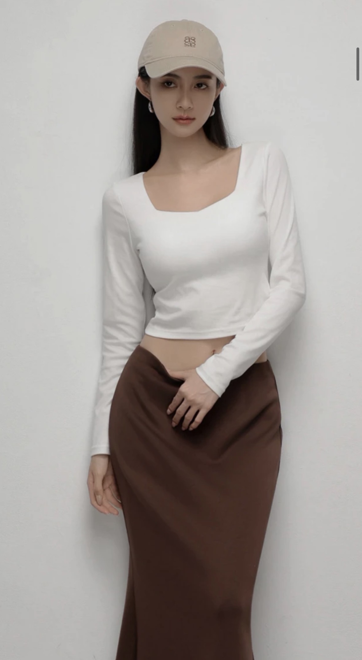 方V領長袖短版BRA TOP