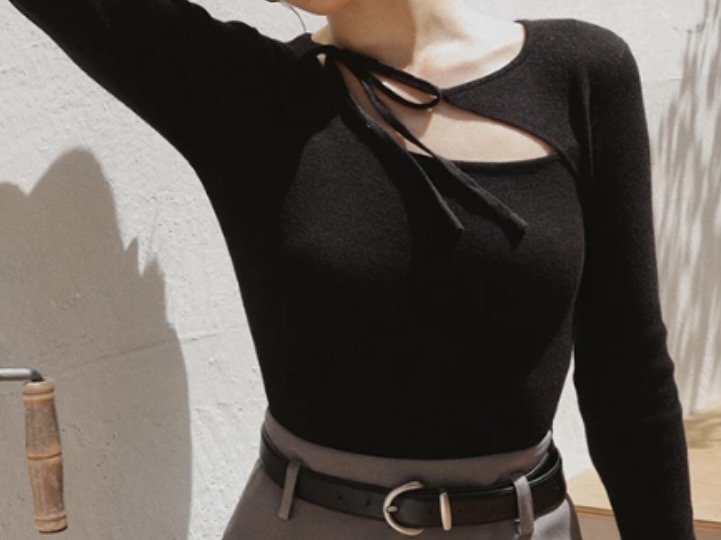 【Ling Cheng聯名】不對稱領口綁帶長袖針織衫【Ling Cheng聯名】不對稱領口綁帶長袖針織衫