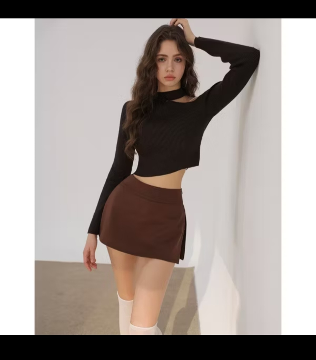 【空氣層好身材發熱系列】開衩層次感A字短裙