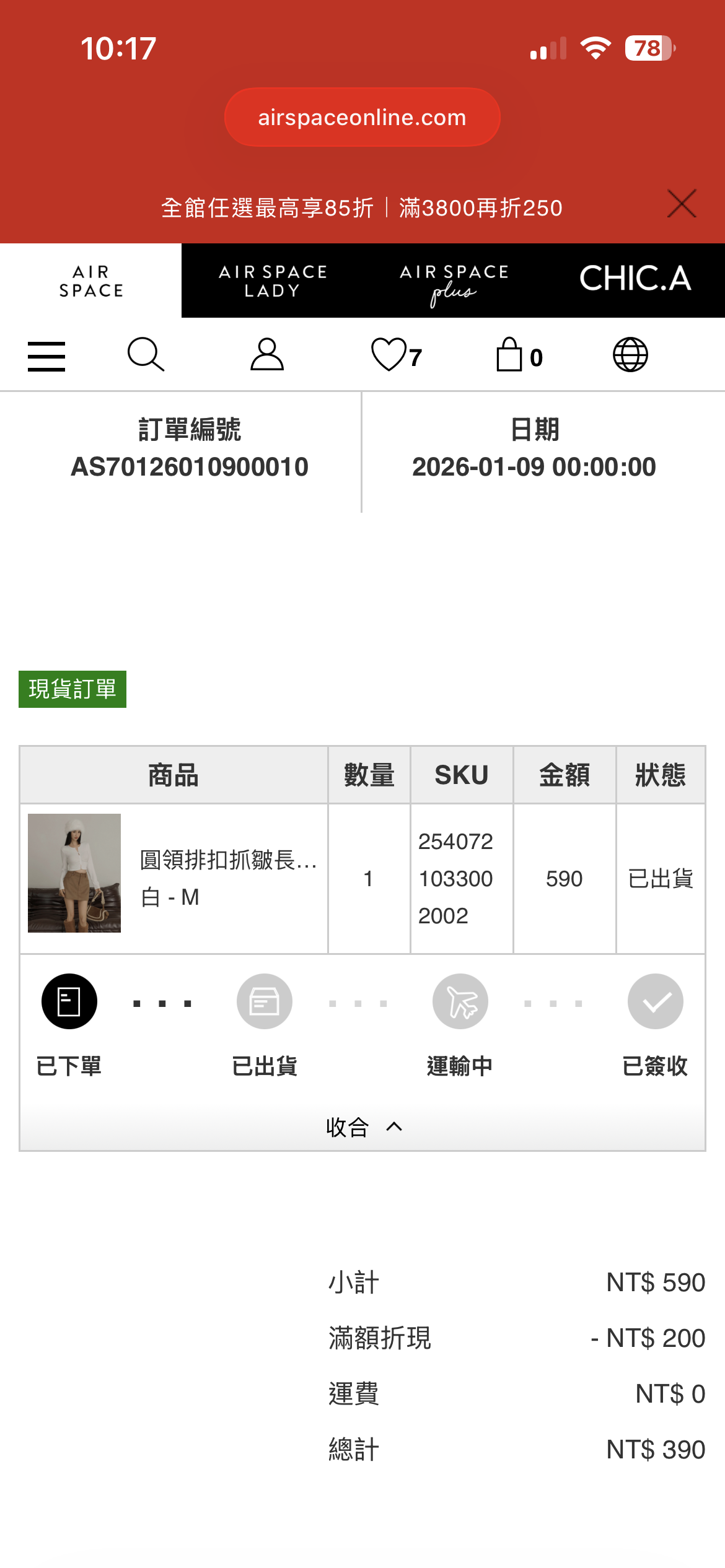 我的紅利點數 590 點AIR SPACE紅利點數
