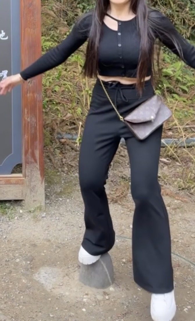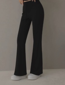這個材質有保暖的感覺,喇叭褲的設計穿起來不會像睡褲,好看。