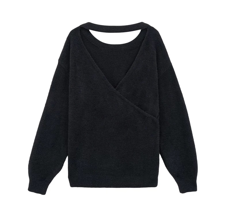 【抗起球仿羊絨】前後兩穿交叉鏤空V領長袖針織衫