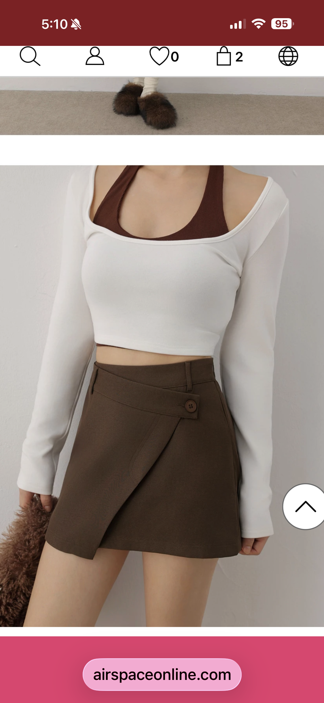 此款短裙的腰部採用不對稱斜扣設計,在細節上提升視覺層次感。A 字版型自然展開,修飾腿部線條。後腰彈性鬆緊,穿著時不束縛。斜紋面料挺度適中,讓下半身輪廓俐落有型。