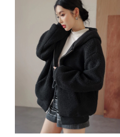 正反兩穿羊羔毛內裡連帽拉鍊外套