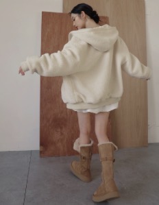 正反兩穿羊羔毛內裡連帽拉鍊外套