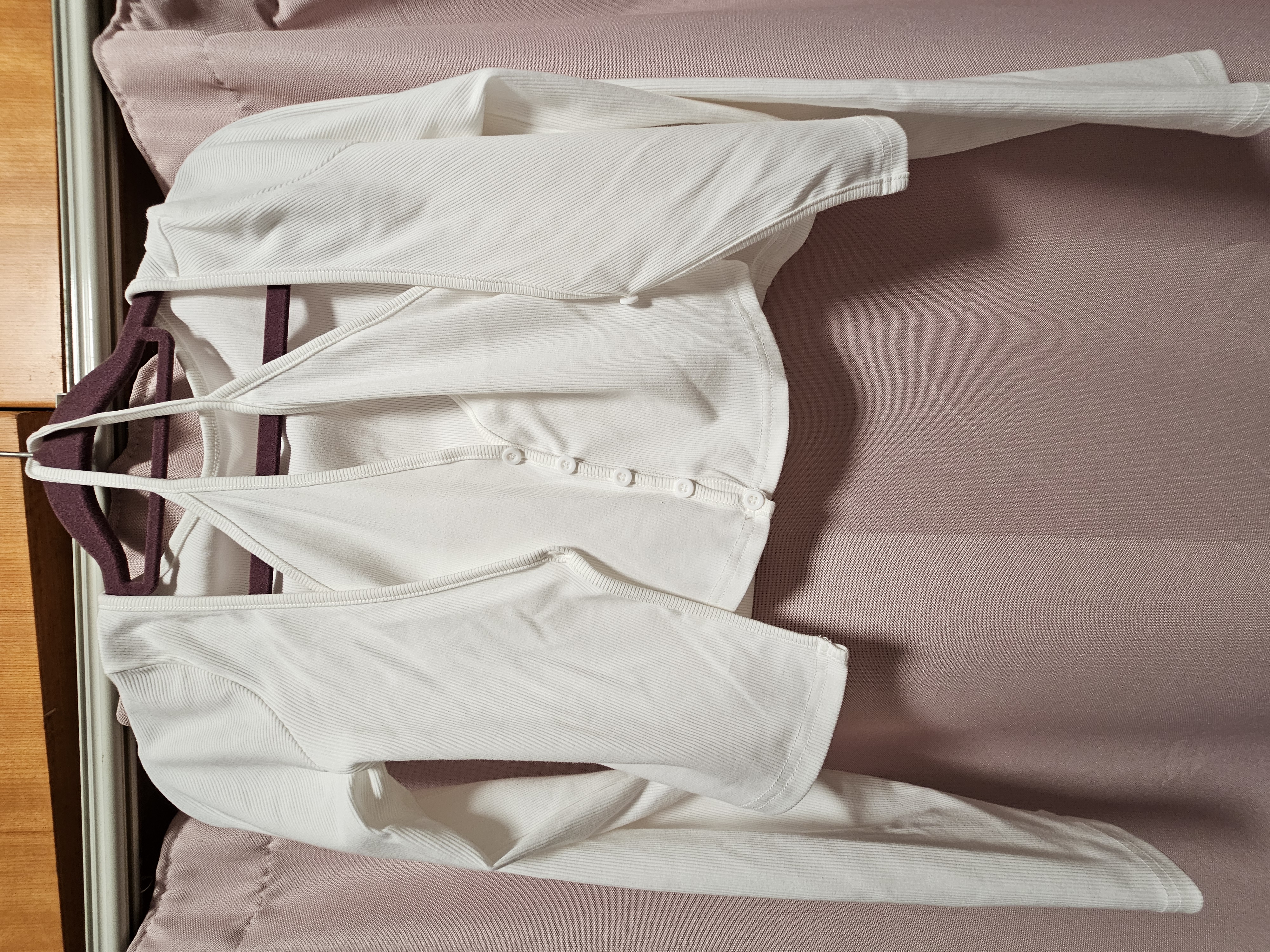 假兩件繞頸排扣背心V領長袖短版羅紋開襟衫
